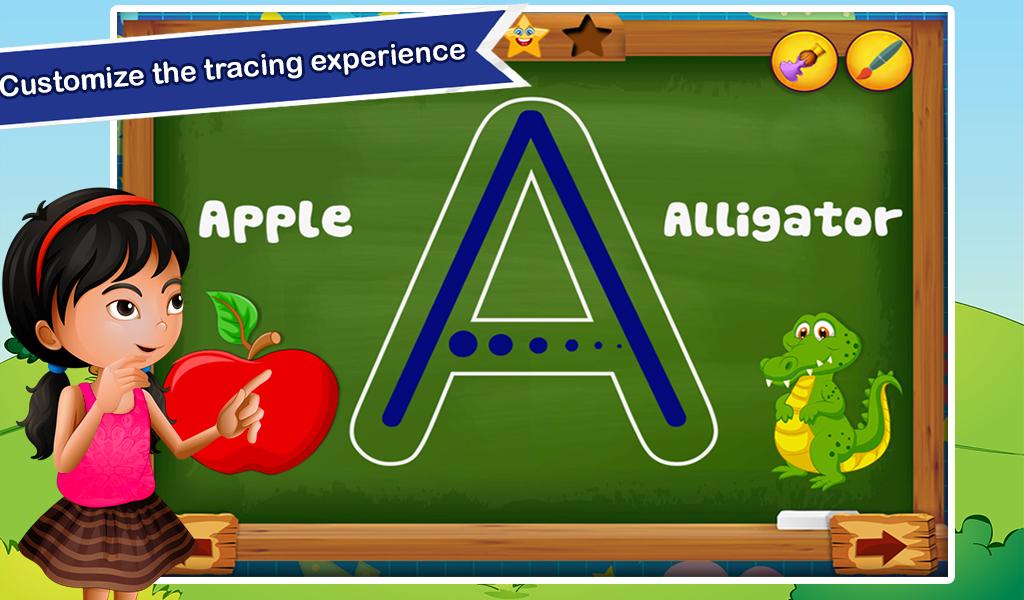 Trace and learn all the letters of the alphabets easily and also learn the numbers easily by tracing on them. Follow the steps and draw through the outlined to complete the alphabet. Also try to draw the complete alphabet and the number by yourself. Use different colors of paint brushes of various different sizes as per your choice. Earn points by completing the alphabet and the number perfectly. Earn maximum points by the end of the game and learn perfectly all the different numbers and letters.